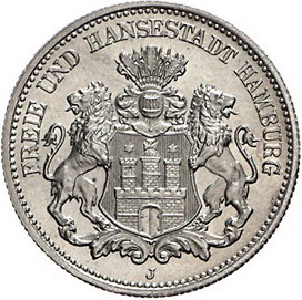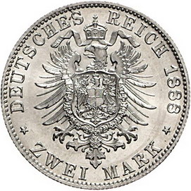 Los-Nummer: Auktion 51 - 2610 Münzen des Deutschen Kaiserreichs Hamburg 2 Mark 1888 J. Jaeger 61. Prachtexemplar. Fast Stempelglanz Schätzpreis: 600,- Zuschlag: unverkauft |