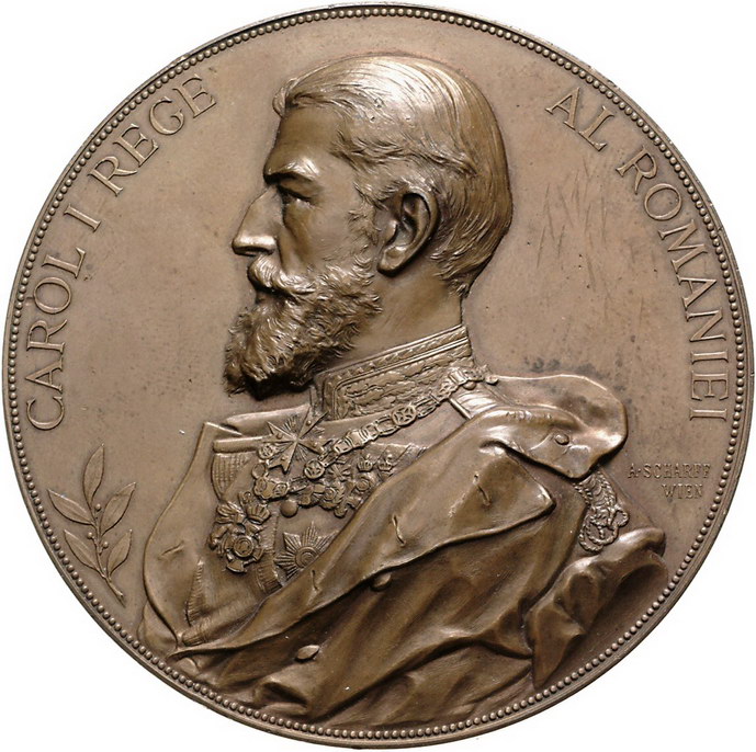 Los-Nummer: Auktion 51 - 3666 Ausländische Münzen und Medaillen Rumänien Carol I. 1866-1914, Bronzemedaille 1895, von Scharff. Wie vorher. 70,5 mm. Winz. Kratzer und kl. Randfehler, sehr schön - vorzüglich Schätzpreis: 100,- Zuschlag: unverkauft |