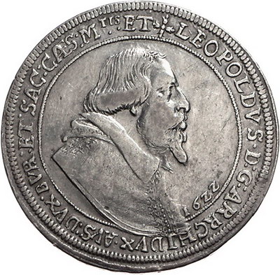 Los-Nummer: Auktion 51 - 2030 Haus Habsburg Haus Habsburg Erzherzog Leopold V. 1619-1632, Taler 1622, Ensisheim. Voglhuber 174/2 var, Davenport 3348 , E.u.L. 253. Stempelfehler, sehr schön Schätzpreis: 125,- Zuschlag: 150,- |