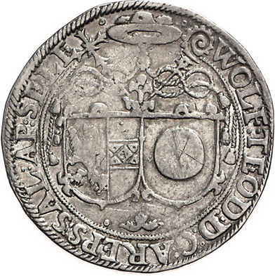 Los-Nummer: Auktion 51 - 2231 Haus Habsburg Salzburg, Erzbistum Wolf Dietrich von Raitenau 1587-1612, Taler o.J. Probszt 825, Davenport 8187. Sehr schön Schätzpreis: 150,- Zuschlag: 130,- |
