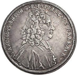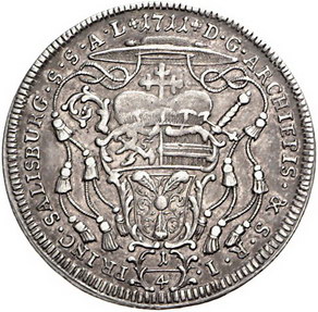 Los-Nummer: Auktion 51 - 2241 Haus Habsburg Salzburg, Erzbistum Franz Anton von Harrach 1709-1727, 1/4 Taler 1711, Stempel von P.H. Müller. Brustbild nach rechts / Gekröntes Wappen unter Legatenhut. Probszt 2039. Selten. Sehr schön Schätzpreis: 600,- Zuschlag: unverkauft |