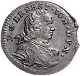 Los-Nummer: Auktion 51 - 2829 Ausländische Münzen und Medaillen Baltikum-Kurland, Herzogtum Ernst Johann von Biron 1762-1769, Cu Schilling 1764 IFS. Neumann 332, Kruggel/Gerbasevskis 2.3. Winz. Zainende, vorzüglich Schätzpreis: 175,- Zuschlag: unverkauft |