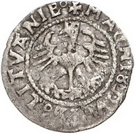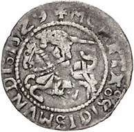 Los-Nummer: Auktion 51 - 2843 Ausländische Münzen und Medaillen Baltikum-Litauen Sigismund I. von Polen 1506-1548, Halbgroschen 1529 mit V unter dem Reiter. Gumowski 513, Kopicki 3183 (R7). Sehr selten. Schön - sehr schön Schätzpreis: 150,- Zuschlag: 500,- |
