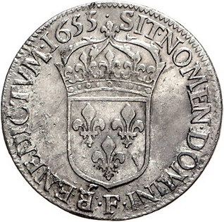 Los-Nummer: Auktion 51 - 2987 Ausländische Münzen und Medaillen Frankreich Ludwig XIV. 1643-1715, 1/2 Ecu à la mèche longue 1655 F, Angers. Gadoury 169. Sehr schön Schätzpreis: 100,- Zuschlag: unverkauft |
