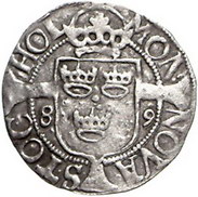 Los-Nummer: Auktion 51 - 3916 Ausländische Münzen und Medaillen Schweden Johann III. 1568-1592, Örtug 1589. S.M. 101 b. Sehr schön Schätzpreis: 75,- Zuschlag: unverkauft |