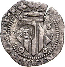 Los-Nummer: Auktion 51 - 4010 Ausländische Münzen und Medaillen Spanien Philipp II. 1556-1598, Cu 2 Sueldos 1596, Perpignan. Mit Gegenstempel: Kopf Johannes des Täufers. Calicó/Trigo vgl. 751. Schrötlingsriss, fast sehr schön Schätzpreis: 125,- Zuschlag: unverkauft |