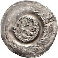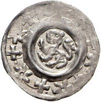 Los-Nummer: Auktion 51 - 4052 Ausländische Münzen und Medaillen Tschechien-Eger (Cheb), Reichsmünzstätte Friedrich II. 1212-1250, Dünnpfennnig. 0,80 g. Ähnlich wie vorher, die Rosetten im Avers sechsblättrig, Revers kaum sichtbar. Hásková 38 var. Vorzüglich / schön Schätzpreis: 100,- Zuschlag: 100,- |