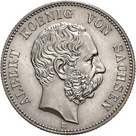 Los-Nummer: Auktion 51 - 2671 Münzen des Deutschen Kaiserreichs Sachsen Albert 1873-1902, 2 Mark 1888 E. Jaeger 121. Vorzüglich / Stempelglanz Schätzpreis: 500,- Zuschlag: unverkauft |