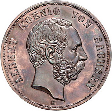Los-Nummer: Auktion 51 - 2673 Münzen des Deutschen Kaiserreichs Sachsen Albert 1873-1902, 5 Mark 1889 E. Auf die 800-Jahrfeier des Hauses Wettin. Abschlag in Bronze. Jaeger 123 a. Vorzüglich + Schätzpreis: 400,- Zuschlag: unverkauft |