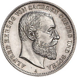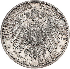 Los-Nummer: Auktion 51 - 2697 Münzen des Deutschen Kaiserreichs Sachsen-Coburg-Gotha Alfred 1893-1900, 2 Mark 1895 A. Jaeger 145. Minimal berieben, vorzüglich / Stempelglanz Schätzpreis: 750,- Zuschlag: unverkauft |