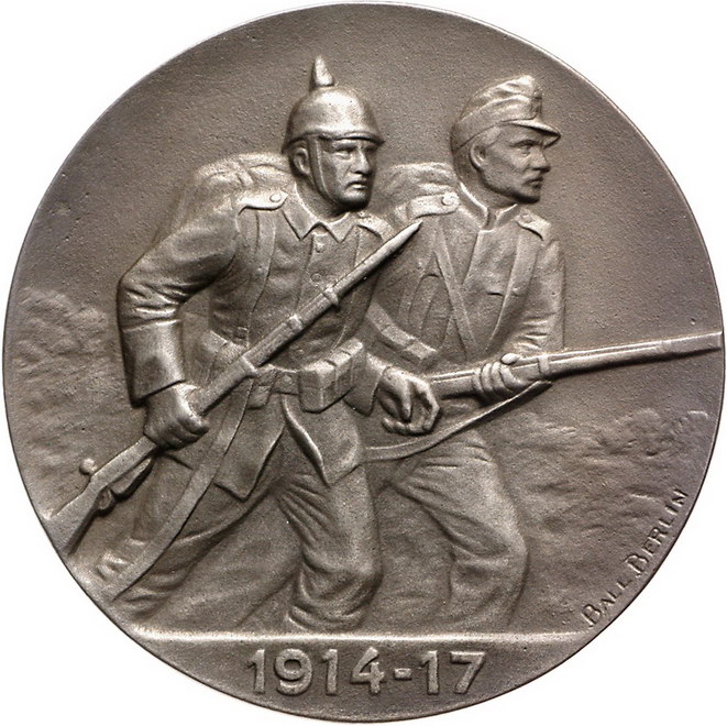 Los-Nummer: Auktion 51 - 2541 Medaillen Erster Weltkrieg Personenmedaillen Linsingen, Alexander von, Eisengussmedaille o.J. (1917), von Eue. Brustbild halblinks / Zwei sturmbereite Infanteristen. 92 mm. Vorzüglich Schätzpreis: 150,- Zuschlag: 120,- |