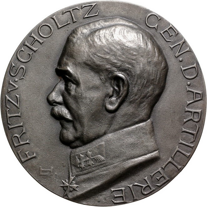 Los-Nummer: Auktion 51 - 2545 Medaillen Erster Weltkrieg Personenmedaillen Scholtz, Fritz von, Eisengussmedaille o.J. (1915), von Habich. Brustbild in Uniform nach links / Sieben Zeilen Schrift über Mörsergeschütz. 90 mm. Vorzüglich Schätzpreis: 150,- Zuschlag: 260,- |