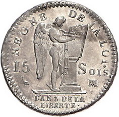 Los-Nummer: Auktion 51 - 3002 Ausländische Münzen und Medaillen Frankreich Ludwig XVI. 1774-1793, 15 Sols constitutionnels 1791 MA, Marseille. Brustbild nach links / Geflügelter Genius schreibt auf Tafel. Gadoury 36. Prachtexemplar. Stempelglanz Schätzpreis: 400,- Zuschlag: 670,- |