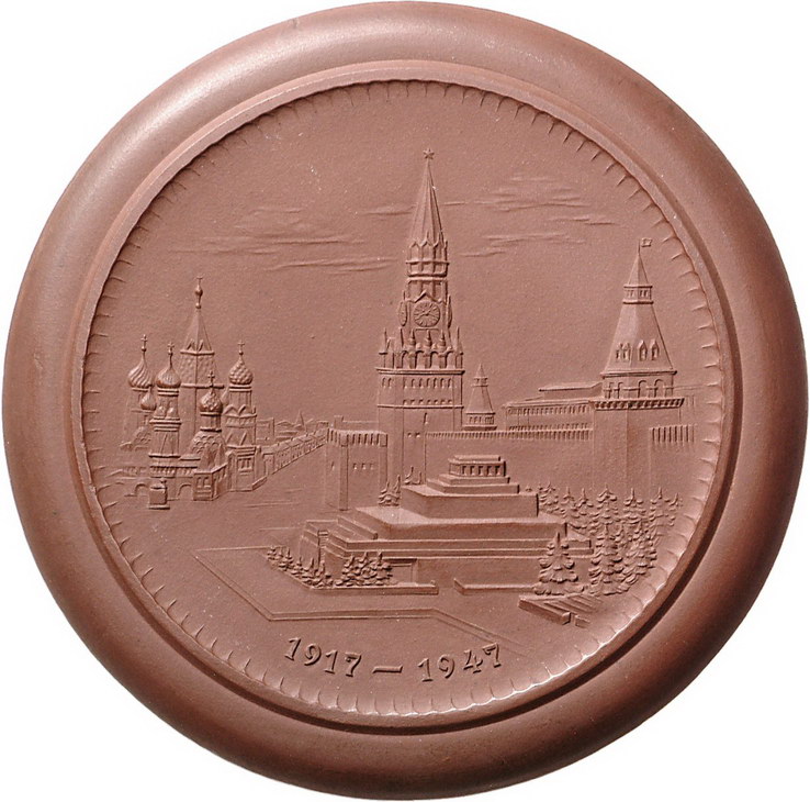 Los-Nummer: Auktion 51 - 2775 Porzellanmünzen und Medaillen Meißner Porzellanmedaillen Moskau, 30-Jahrfeier der Oktober-Revolution 1947. Roter Platz. Scheuch 1853 a, Weigelt 3.362 (LP). 105 mm. Fabrikfrisch Schätzpreis: 100,- Zuschlag: unverkauft |
