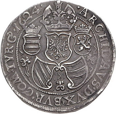 Los-Nummer: Auktion 51 - 2040 Haus Habsburg Haus Habsburg Ferdinand II. 1619-1637, Taler 1624, Wien. Herinek 384, Voglhuber 154/8, Davenport 3084. Schöne Patina. Sehr schön + Schätzpreis: 200,- Zuschlag: 270,- |