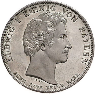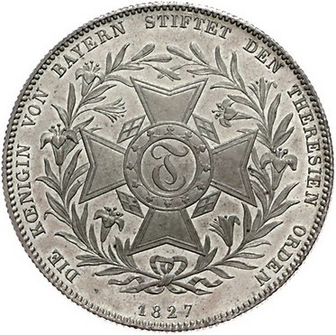 Los-Nummer: Auktion 51 - 129 Altdeutsche Münzen und Medaillen Bayern Ludwig I. 1825-1848, Geschichtstaler 1827. Stiftung des Theresienordens. Jaeger 36, Thun 54, AKS 119, Kahnt 81. Prachtexemplar. Fast Stempelglanz Schätzpreis: 400,- Zuschlag: 450,- |