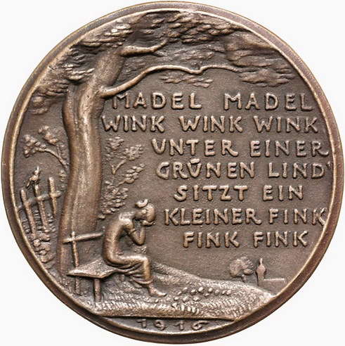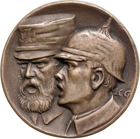 Los-Nummer: Auktion 51 - 2366 Medaillen Münchner Medailleure Goetz, Karl Bronzegussmedaille 1916. Auf die Mobilmachung des Landsturms. Junger und alter Soldat / Frau sitzt auf Bank unter Linde und beweint die Eingezogenen. Kienast 179. 59 mm. Vorzüglich Schätzpreis: 125,- Zuschlag: 130,- |