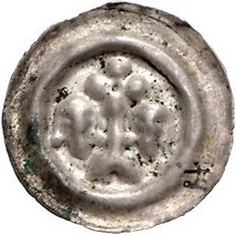 Los-Nummer: Auktion 51 - 1258 Altdeutsche Münzen und Medaillen Niederlausitz Anonyme Gepräge, Brakteat. 0,46 g. Stab mit Rose auf Halbbogen zwischen zwei gelockten Köpfen. Bahrfeldt 117, Fd. Gr.-Briesen 19, Fd. Wolkenberg 26, Fd. Mochow 47 , Thormann (Sachsen) 63. Sehr schön Schätzpreis: 175,- Zuschlag: unverkauft |