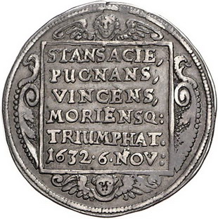 Los-Nummer: Auktion 51 - 1297 Altdeutsche Münzen und Medaillen Nürnberg-unter schwedischer Besetzung Gustav Adolph 1611-1632, Dicker 1/2 Taler 1632. Auf seinen Tod. Abschlag von den Stempeln des Vierteltalers. S.B. -, Slg. Erlanger - , Hildebrand 183. Schöne Patina. Winz. Schrötlingsfehler, sehr schön + Schätzpreis: 1000,- Zuschlag: 1000,- |