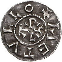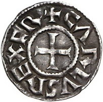 Los-Nummer: Auktion 51 - 30 Karolinger Karl der Kahle 843-877, Pfennig, Melle. 1,61 g. +METVLLO Karolus-Monogramm / CARLVSREXFR Kreuz. Morrison-Grunthal 1063. Sehr schön + Schätzpreis: 150,- Zuschlag: 230,- |