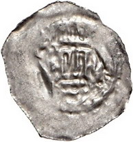 Los-Nummer: Auktion 51 - 1904 Altdeutsche Münzen und Medaillen Würzburg, Bistum Heinrich II. von Stühlingen 1159-1165, Pfennig. 0,77 g. Kopf von vorn / Turmgebäude. Ehwald 2804. Sehr schön Schätzpreis: 250,- Zuschlag: 200,- |