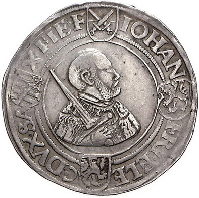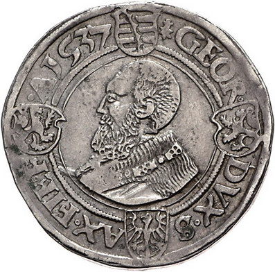 Los-Nummer: Auktion 51 - 1526 Altdeutsche Münzen und Medaillen Sachsen-Kurfürstentum Johann Friedrich und Georg 1534-1539, Taler 1537, Annaberg. Münzzeichen Stern mit Kreuz. Keilitz 128, Slg. Merseburger -, Schnee 72, Davenport 9721, Schulten 3060. Sehr schön Schätzpreis: 250,- Zuschlag: 295,- |