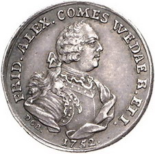 Los-Nummer: Auktion 51 - 1874 Altdeutsche Münzen und Medaillen Wied-Neuwied Johann Friedrich Alexander 1737-1791, Feinsilber Dritteltaler 1753. Brustbild nach rechts / Ansicht von Neuwied. Schneider 49. Fast vorzüglich Schätzpreis: 200,- Zuschlag: 420,- |