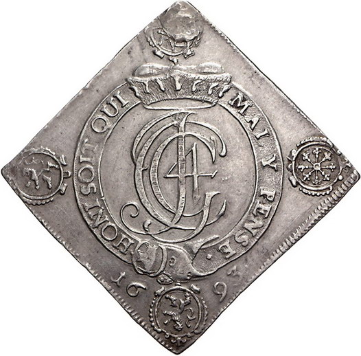 Los-Nummer: Auktion 51 - 1572 Altdeutsche Münzen und Medaillen Sachsen-Albertinische Linie Johann Georg IV. 1691-1694, Talerklippe 1693. Auf das Schießen bei der Verleihung des Hosenbandordens. Slg. Merseburger 1311, Schnee 977, Davenport 7649. Henkelspur, sehr schön Schätzpreis: 300,- Zuschlag: 270,- |