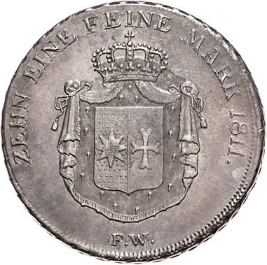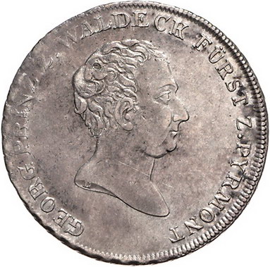 Los-Nummer: Auktion 51 - 1854 Altdeutsche Münzen und Medaillen Waldeck Georg Heinrich -, Taler 1811. Jaeger 11, Thun 403, AKS 11, Kahnt 545. Sehr schön - vorzüglich Schätzpreis: 1000,- Zuschlag: 900,- |