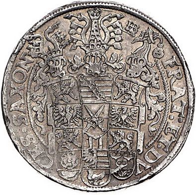 Los-Nummer: Auktion 51 - 1543 Altdeutsche Münzen und Medaillen Sachsen-Albertinische Linie Christian II. und seine Brüder unter Vormundschaft 1591-1601, Dicker Doppeltaler 1600. Keilitz/Kahnt 187, Slg. Merseburger -, Schnee 753, Davenport 7556. Schöne Patina. Winz. Randfehler, sehr schön - vorzüglich Schätzpreis: 1000,- Zuschlag: 830,- |