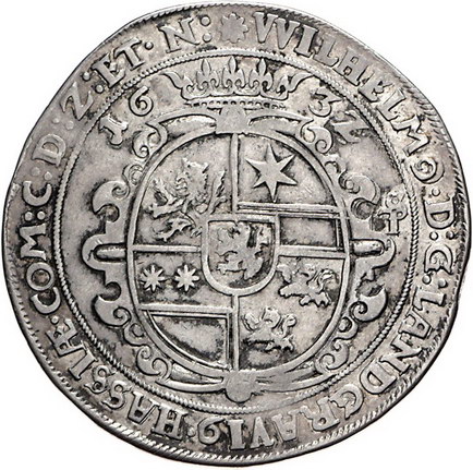 Los-Nummer: Auktion 51 - 913 Altdeutsche Münzen und Medaillen Hessen-Kassel Wilhelm V. 1627-1637, Weidenbaumtaler 1632. Schütz 806 ff, Davenport 6746. Prägeschwäche, sehr schön Schätzpreis: 400,- Zuschlag: 370,- |
