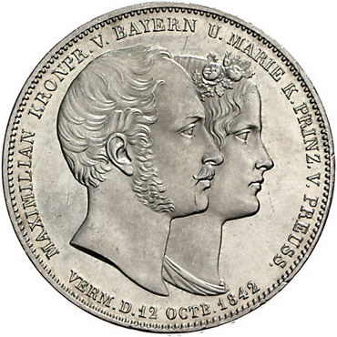 Los-Nummer: Auktion 51 - 136 Altdeutsche Münzen und Medaillen Bayern Ludwig I. 1825-1848, Geschichtsdoppeltaler 1842. Vermählung. Jaeger 72, Thun 81, AKS 104, Kahnt 108. Winz. Kratzer, vorzüglich - Stempelglanz Schätzpreis: 350,- Zuschlag: 320,- |