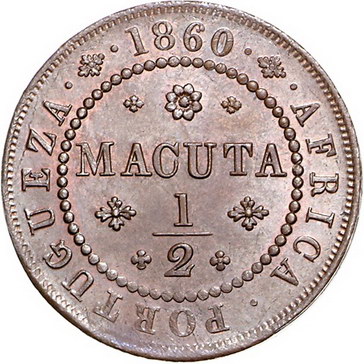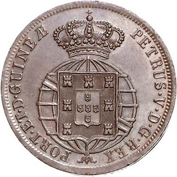 Los-Nummer: Auktion 51 - 3655 Ausländische Münzen und Medaillen Portugal-Angola Pedro V. 1853-1861, Cu 1/2 Macuta 1860. K.M. 58, Gomes 01.02. Prachtexemplar. Stempelglanz Schätzpreis: 300,- Zuschlag: 240,- |