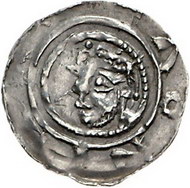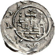Los-Nummer: Auktion 51 - 40 Altdeutsche Münzen und Medaillen Anhalt Adalbert von Ballenstedt 1059-1080, Pfennig. 0,94 g. Gekrönter Kopf mit Diadem nach links / Kreuz mit Kugeln in den Winkeln über zweitürmiger Torburg. Thormann 3/4 var, Dannenberg 1578. Sehr schön Schätzpreis: 125,- Zuschlag: 175,- |