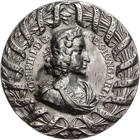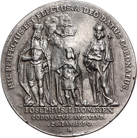 Los-Nummer: Auktion 51 - 2140 Haus Habsburg Haus Habsburg Josef I. 1705-1711, Silbergussmedaille 1690, von Brunner? Auf die römische Krönung in Augsburg. Belorbeertes Brustbild nach rechts, umgeben von mit Schriftband umwundenen Zweigen / Hand aus Wolke krönt den zwischen seinen Eltern stehenden jungen Joseph. Slg. Montenuovo - , Slg. Julius - vergl. 547 (Rückseite), Forster -. 47,5 mm, 43,04 g. Sehr selten. Möglicherweise späterer Guss. Etwas überarbeitet, sehr schön Schätzpreis: 75,- Zuschlag: 86,- |