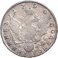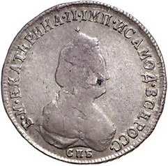 Los-Nummer: Auktion 51 - 3729 Ausländische Münzen und Medaillen Russland Katharina II. 1762-1796, 1/4 Rubel 1794, St. Petersburg. Münzmeister Andrei Kutzberg. Harris 153, Diakov 758 (R1), Bitkin 358. Schrötlingsfehler, fast sehr schön Schätzpreis: 100,- Zuschlag: 80,- |