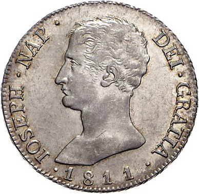 Los-Nummer: Auktion 51 - 4025 Ausländische Münzen und Medaillen Spanien Joseph Napoleon Bonaparte 1808-1814, 20 Reales 1811 AI, Madrid. Calicó/Trigo 26, Davenport 308. Prachtexemplar. Fast Stempelglanz Schätzpreis: 750,- Zuschlag: unverkauft |