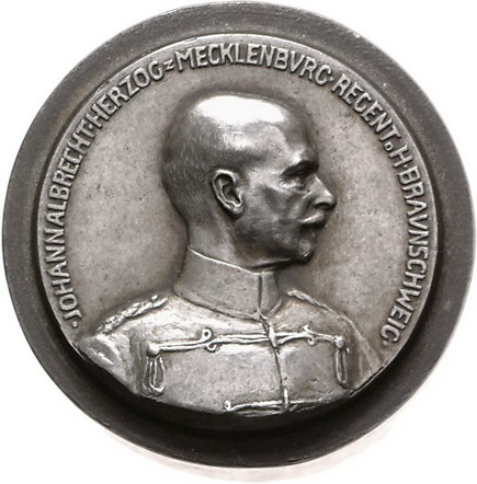 Los-Nummer: Auktion 51 - 1084 Altdeutsche Münzen und Medaillen Mecklenburg-Schwerin Johann Albrecht, Herzog-Regent 1897-1901, Stahlprägestempel#0Medaille# o.J. Patrize der Vorderseite zu der Medaille 1913, von Kramer. Auf die Niederlegung der Regentschaft in Braunschweig. Brustbild in Uniform nach rechts. Slg. Gaettens vergl. 567. 38,5 (45 ) mm, Höhe 32 mm. Vorzüglich Schätzpreis: 250,- Zuschlag: unverkauft |