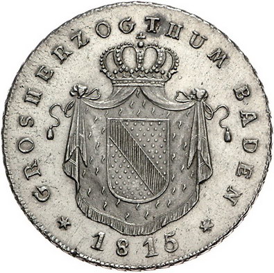 Los-Nummer: Auktion 51 - 69 Altdeutsche Münzen und Medaillen Baden-Durlach Karl Ludwig Friedrich 1811-1818, Taler 1815. Jaeger 21, Thun 15, AKS 25, Kahnt 17. Vorzüglich - Stempelglanz Schätzpreis: 500,- Zuschlag: unverkauft |