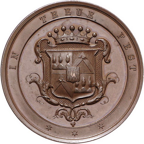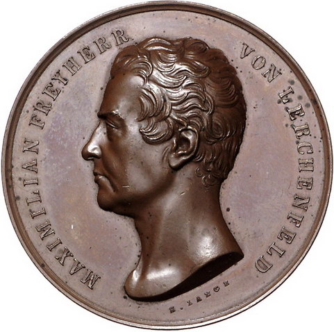 Los-Nummer: Auktion 51 - 151 Altdeutsche Münzen und Medaillen Bayern-München, Stadt Bronzemedaille o.J. (1843), von Lange. Auf den Tod des bayerischen Staatsministers Maximilian Emanuel Freiherr von Lerchenfeld-Aham (*1778 München, +1843 Heinersreuth bei Bamberg). Kopf nach links / Wappen auf gekrönter Kartusche. Hauser 308. 49 mm. Vorzüglich - Stempelglanz Schätzpreis: 125,- Zuschlag: unverkauft |