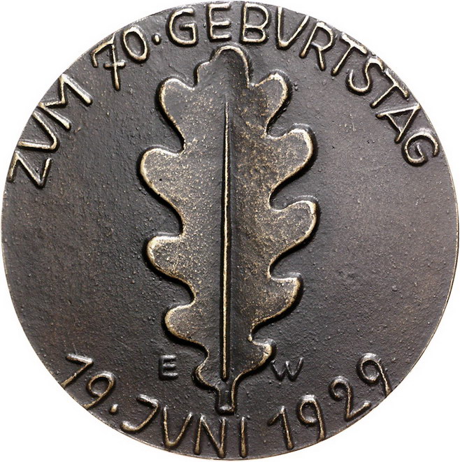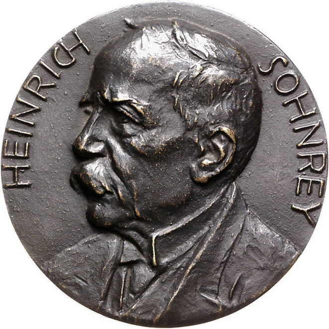 Los-Nummer: Auktion 51 - 2460 Medaillen Personenmedaillen Sohnrey, Heinrich *1859 Jühnde bei Göttingen, +1948 Neuhaus/Solling, Bronzegussmedaille 1929, signiert E.W. Auf seinen 70. Geburtstag. Brustbild nach links / Eichenblatt. 97 mm. Vorzüglich Schätzpreis: 150,- Zuschlag: 120,- |