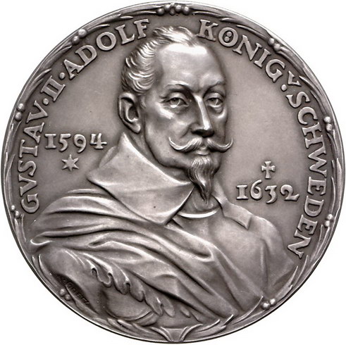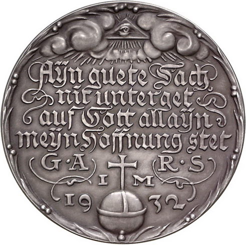 Los-Nummer: Auktion 51 - 2398 Medaillen Münchner Medailleure Goetz, Karl Große Silbermedaille 1932. Auf den 300. Todestag Gustav Adolfs von Schweden. Brustbild halbrechts / Schrift zwischen strahlendem Gottesauge in Wolken und Reichsapfel. Kienast 473. 59,5 mm, 58,90 g. Mattiert. Prägefrisch Schätzpreis: 400,- Zuschlag: 360,- |