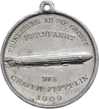 Los-Nummer: Auktion 51 - 2321 Medaillen Luftfahrt Tragbare Aluminiummedaille 1909. Auf die Fernfahrt des 'LZ 6' nach Berlin. Brustbild Graf Zeppelins halbrechts / Luftschiff. Kaiser 320, Button -, Gutt -. 33,5 mm. Mitgeprägte Öse. Winz. Randfehler, winz. Kratzer, fast vorzüglich Schätzpreis: 90,- Zuschlag: unverkauft |