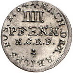 Los-Nummer: Auktion 51 - 843 Altdeutsche Münzen und Medaillen Goslar, Stadt 4 Pfennig 1764. BBK 412 a. Fast Stempelglanz Schätzpreis: 125,- Zuschlag: 180,- |