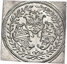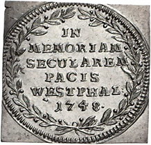 Los-Nummer: Auktion 51 - 866 Altdeutsche Münzen und Medaillen Hall in Schwaben Klippe von den Stempeln des Groschens 1748, von L.G. Laufer. Auf die Jahrhundertfeier des Westfälischen Friedens. Drei Wappen / Schrift in Kranz. Raff 130 a , Dethlefs-Ordelheide 262 K. Prachtexemplar. Stempelglanz Schätzpreis: 750,- Zuschlag: 700,- |
