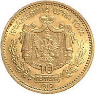 Los-Nummer: Auktion 51 - 3374 Ausländische Münzen und Medaillen Jugoslawien-Montenegro Nicholas I. 1860-1918, 10 Perpera 1910. K.M. 8, Friedberg 3. GOLD. Prachtexemplar. Fast Stempelglanz Schätzpreis: 900,- Zuschlag: 750,- |