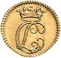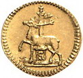Los-Nummer: Auktion 51 - 1811 Altdeutsche Münzen und Medaillen Stolberg-Stolberg Christoph Ludwig II. 1738-1761, 1/4 Dukat o.J. Hirsch / Gekröntes Monogramm. Friederich 1943, Friedberg 3340. GOLD. Vorzüglich Schätzpreis: 500,- Zuschlag: 460,- |