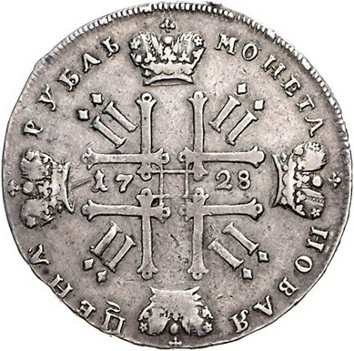 Los-Nummer: Auktion 51 - 3691 Ausländische Münzen und Medaillen Russland Peter II. 1727-1730, Rubel 1728, Moskau. Harris 26, Diakov 1.2.2.20 ff, Davenport 1668. Schöne Patina. Sehr schön - vorzüglich Schätzpreis: 1000,- Zuschlag: 900,- |