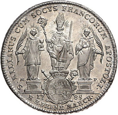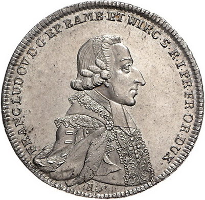 Los-Nummer: Auktion 51 - 1925 Altdeutsche Münzen und Medaillen Würzburg, Bistum Franz Ludwig von Erthal 1779-1795, Taler 1785. Helmschrott 885, Davenport 2905. Prachtexemplar. Stempelglanz Schätzpreis: 1000,- Zuschlag: unverkauft |