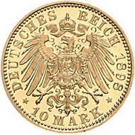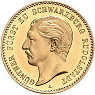 Los-Nummer: Auktion 51 - 2722 Münzen des Deutschen Kaiserreichs Schwarzburg-Rudolstadt Günther Victor 1890-1918, 10 Mark 1898 A. Jaeger 286. GOLD. Minimal berieben, Polierte Platte Schätzpreis: 4000,- Zuschlag: unverkauft |